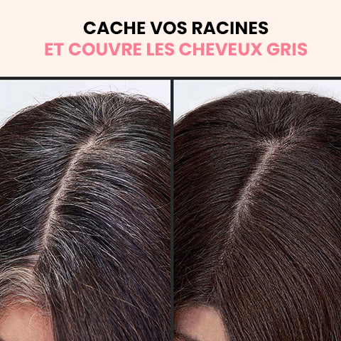 Vos cheveux restent des cheveux — sans effet poudreux — pour un look plus frais et plus jeune entre deux colorations, sans que personne ne remarque que vous avez comblé les zones clairsemées.